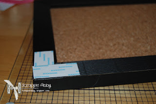 To make this board..I cut some cork board to fit & used more of the Scor-Tape to adhere the cork board to some heavy duty chipboard.